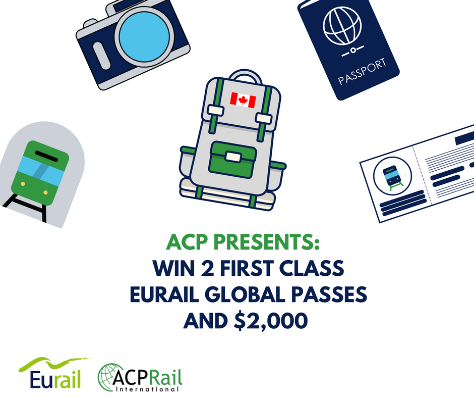 Hey Canada! As summer approaches, why not head to Europe in style? ACP Rail International is giving one lucky winner a chance to travel Europe by train in first class. To enter, simply fill in the entry form on our Facebook page. The grand prize includes two (2) Eurail Global Passes in First Class and 2000$,...Read More